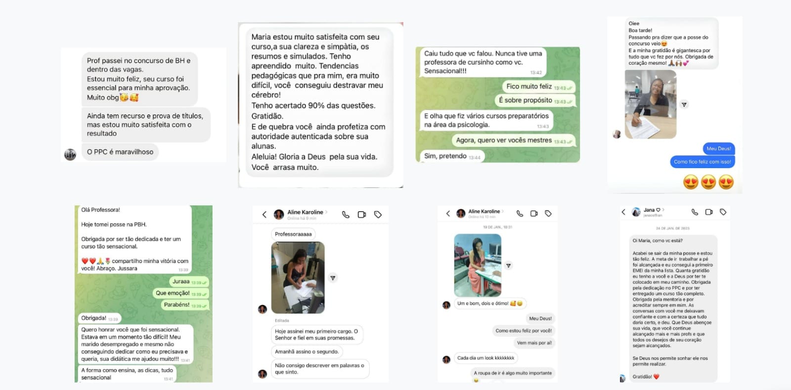 Esses são apenas alguns dos professores que mudaram de vida com o PPC. São centenas de aprovações, conquistas e sonhos realizados. A pergunta é: quando veremos o seu print da vitória?